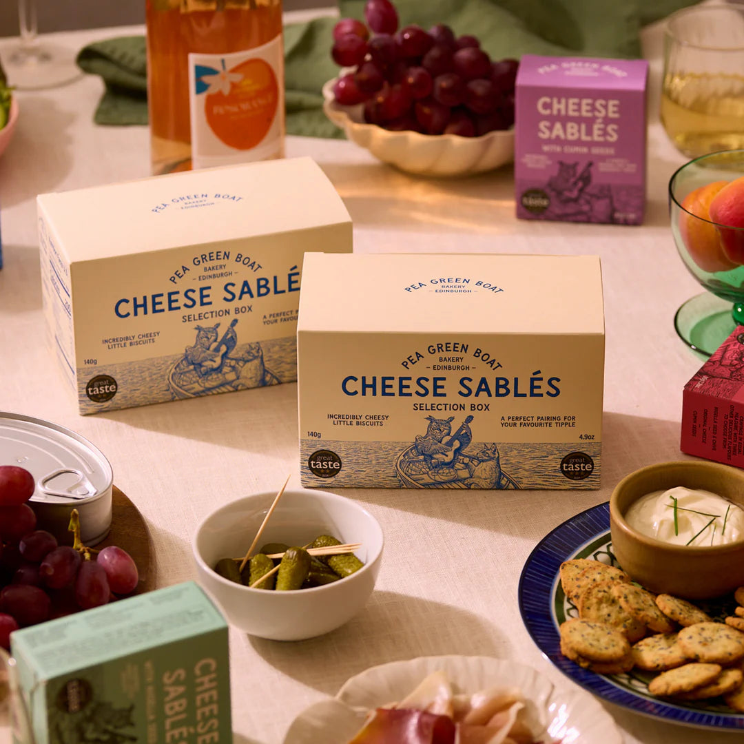 • Can't decide which of Pea Green Boat’s delicious flavours to choose from? Now you can have them all with this handy selection box, containing our Original, Cumin, Fennel & Chilli, and Nigella & Chive Sablés.