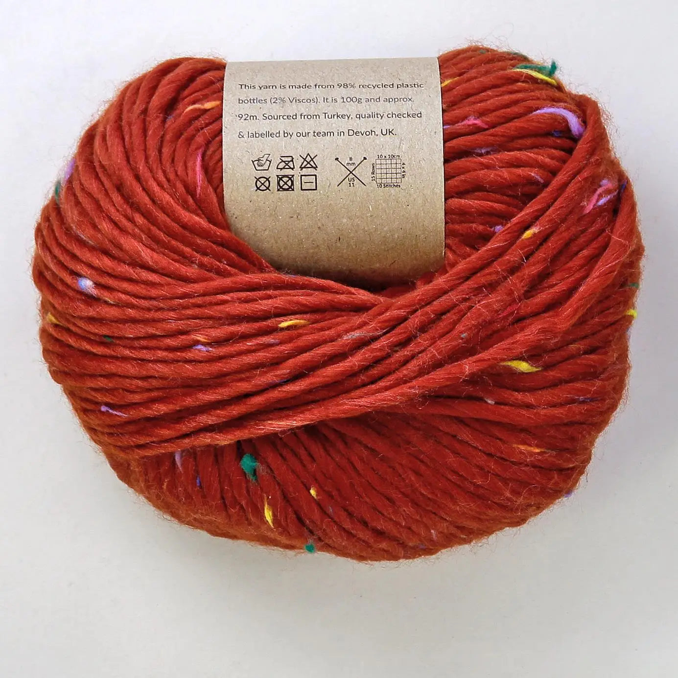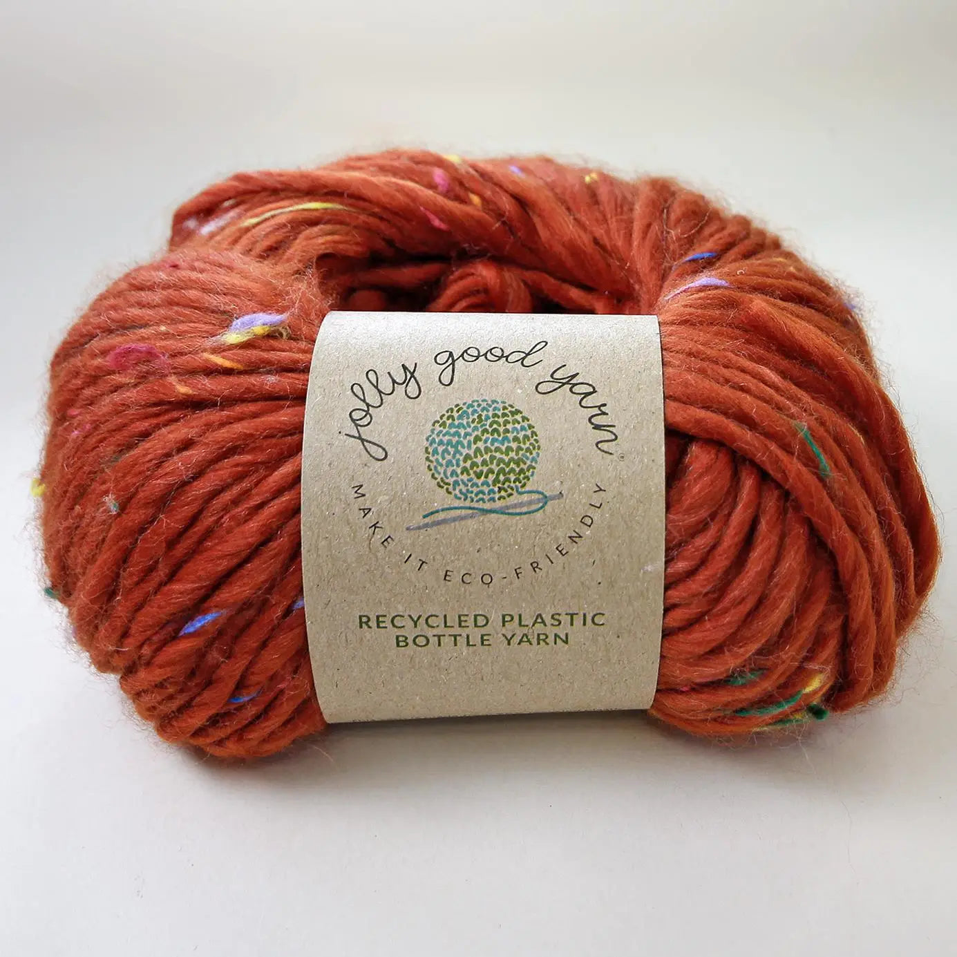 Gorgeous, eco-friendly yarn from Devon-based Jolly Good Yarn. This yarn is made from recycled plastic bottles, that have been cleaned, melted down and spun into the yarn you see here. It's ideal for chunky knitting and crochet projects like jumpers, scarves, cushion covers and even iPad covers.