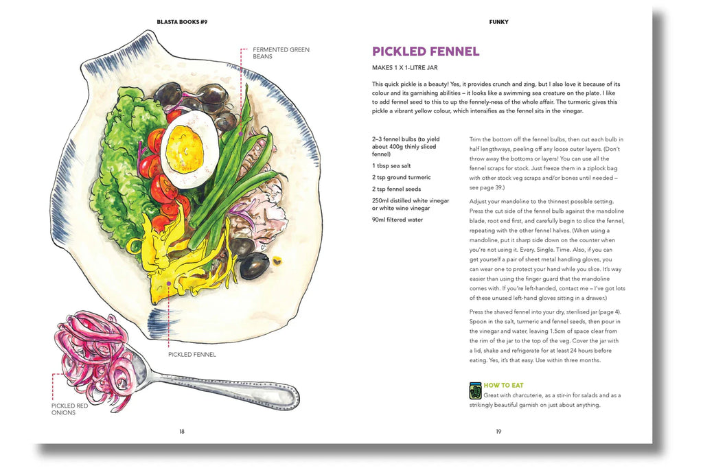 • With suggestions for how to eat and serve each pickle and tips on how to use them in surprising ways (think pickle-brined fries or a pickle zhoug), Caitlin puts the fun into funky to pack your plate with flavour.