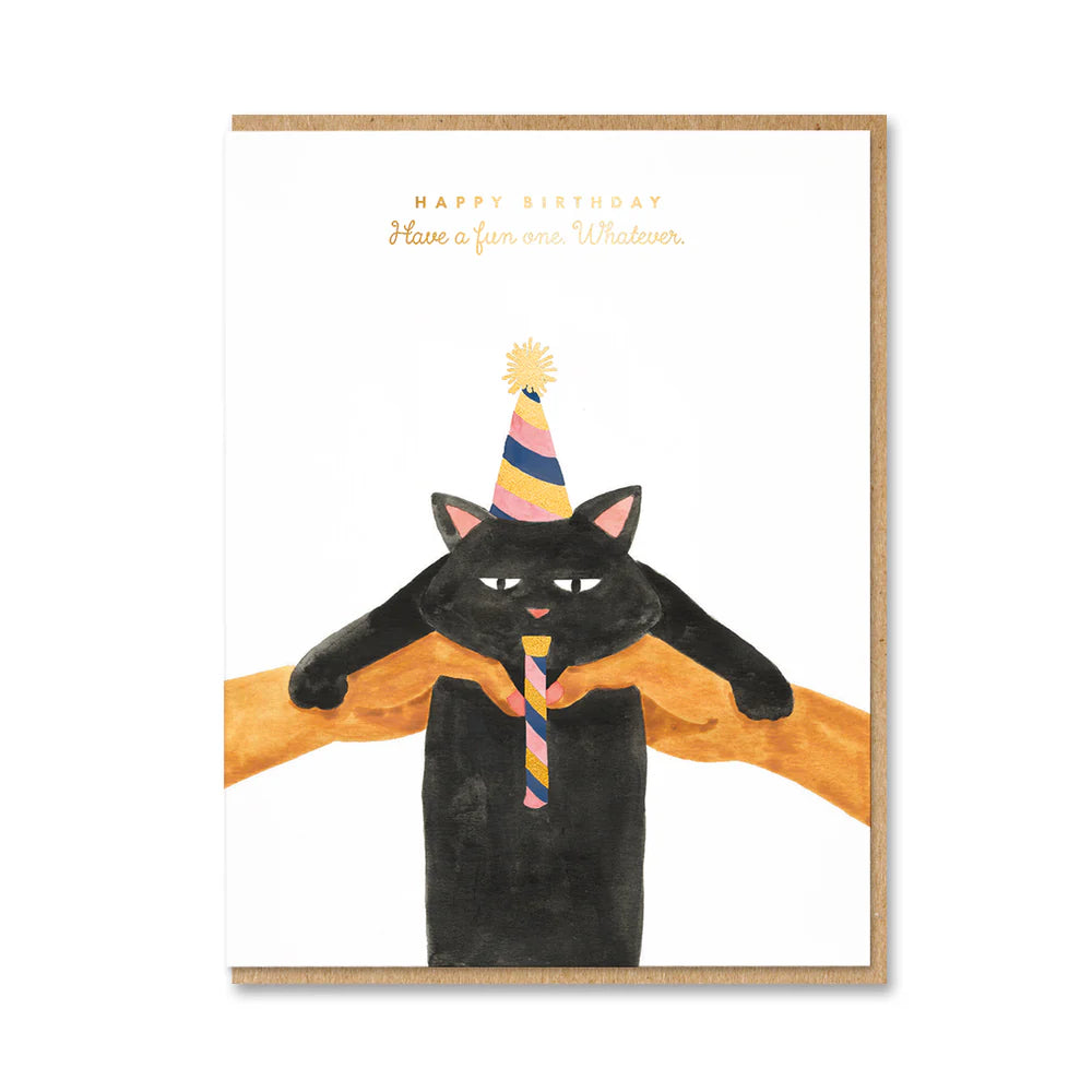 • Party hat on, enthusiasm firmly off. This cat is here to deliver birthday wishes with maximum side-eye and minimal effort. A hilarious pick for anyone who’d rather nap through the festivities — or just loves a grumpy feline.