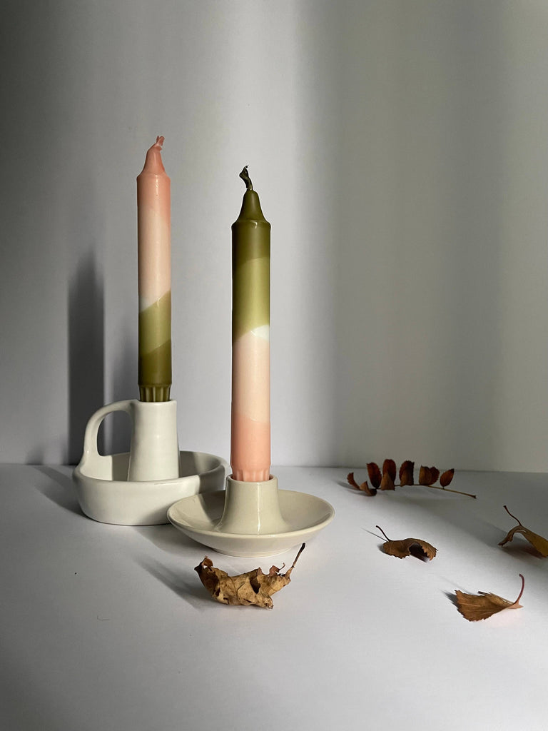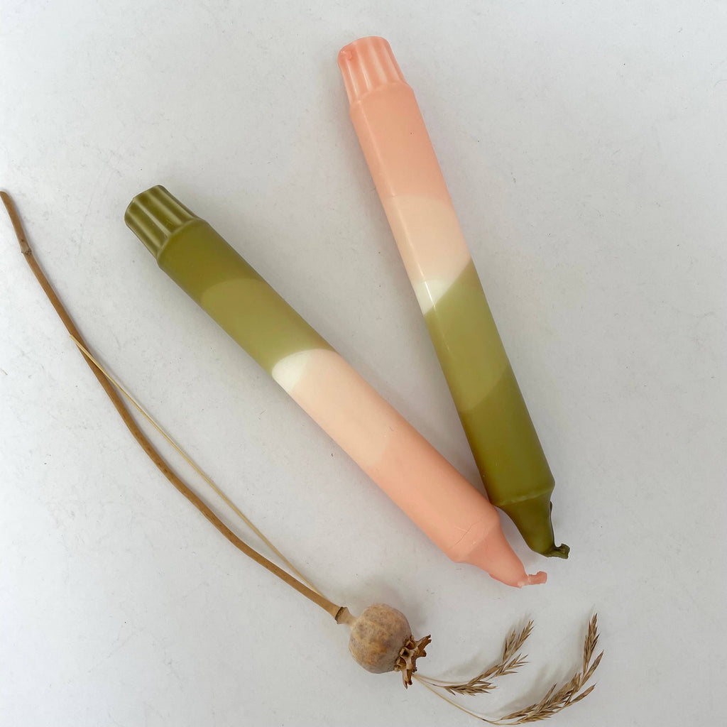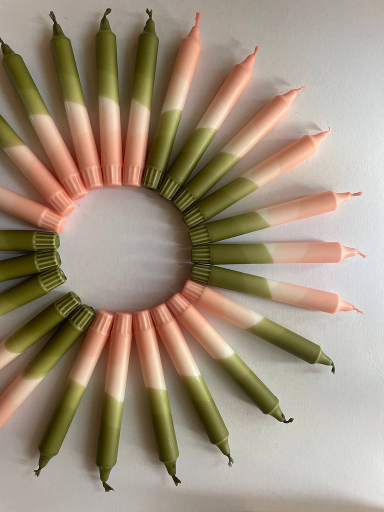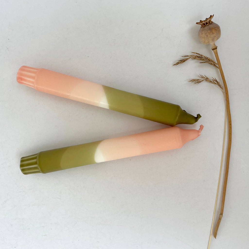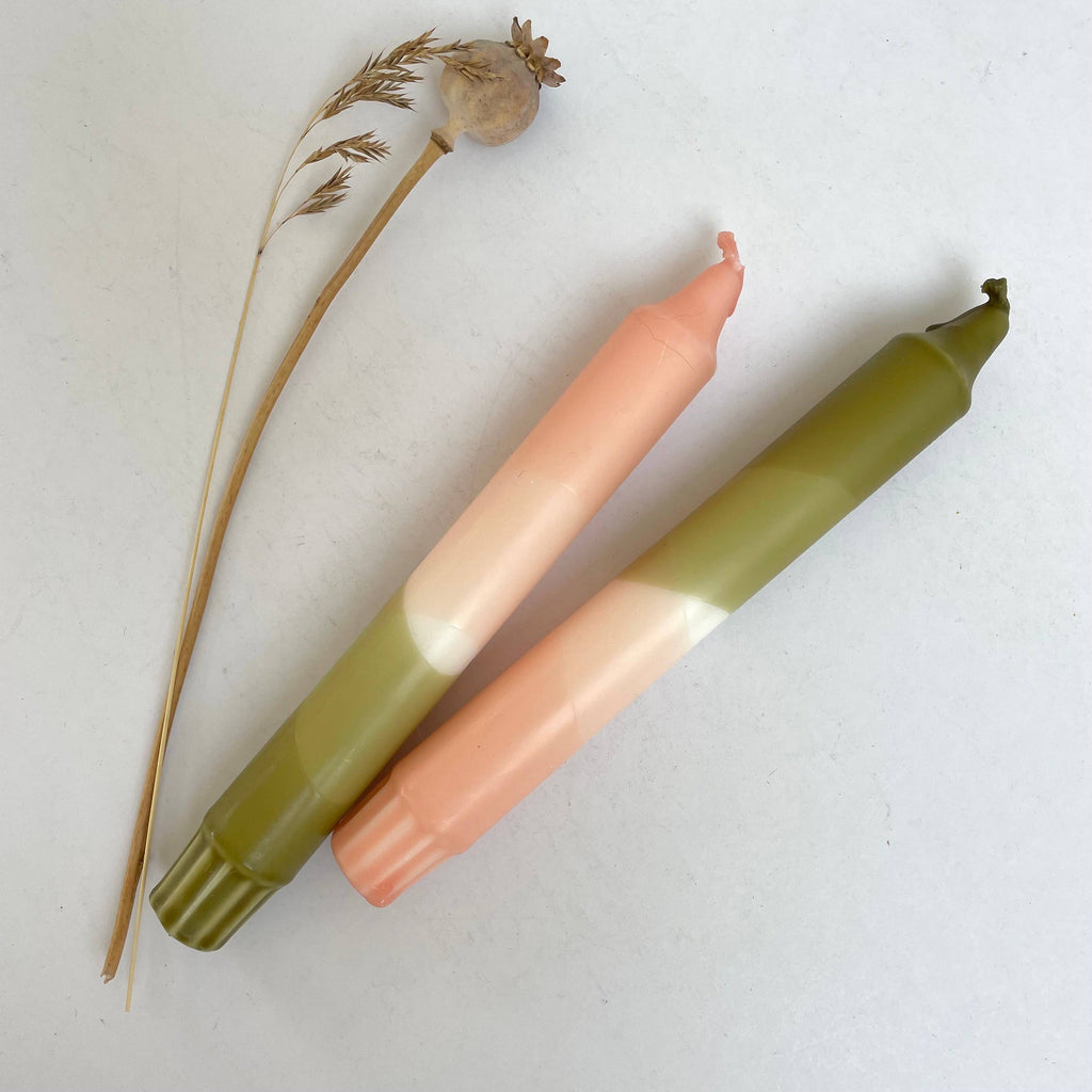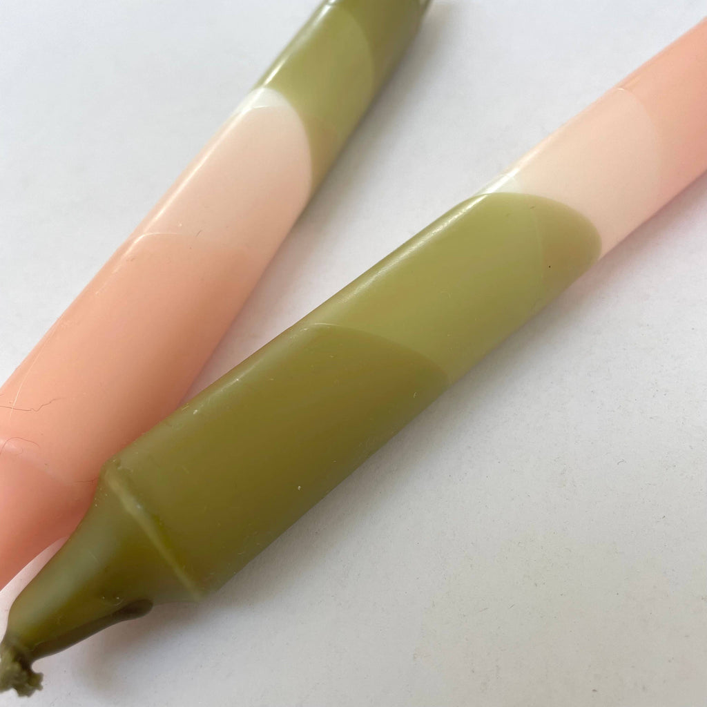 Blush Pink and Olive Green Dip Dyed Dinner Candles