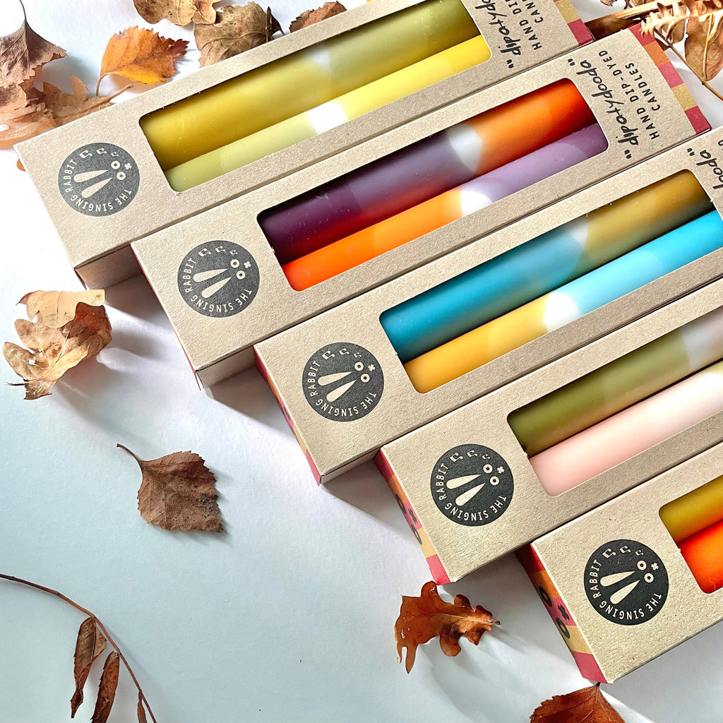 • This set of 2 candles, by The Singing Rabbit, is not just for burning - add some fun and a pop of colour to a mantelpiece or table.