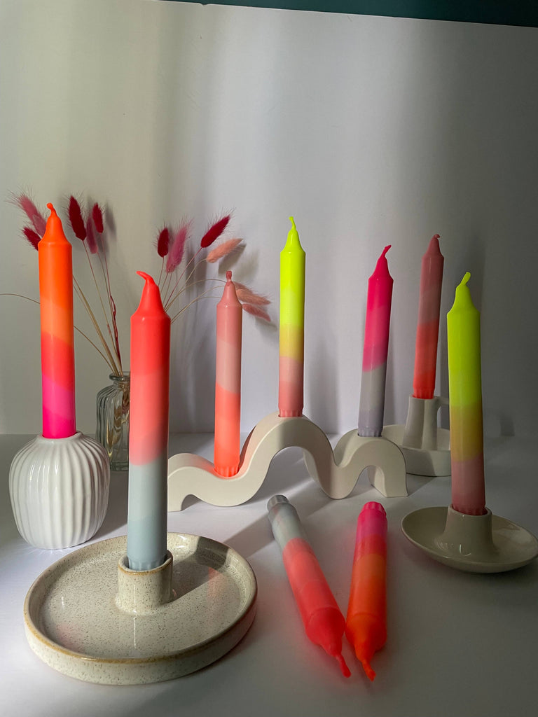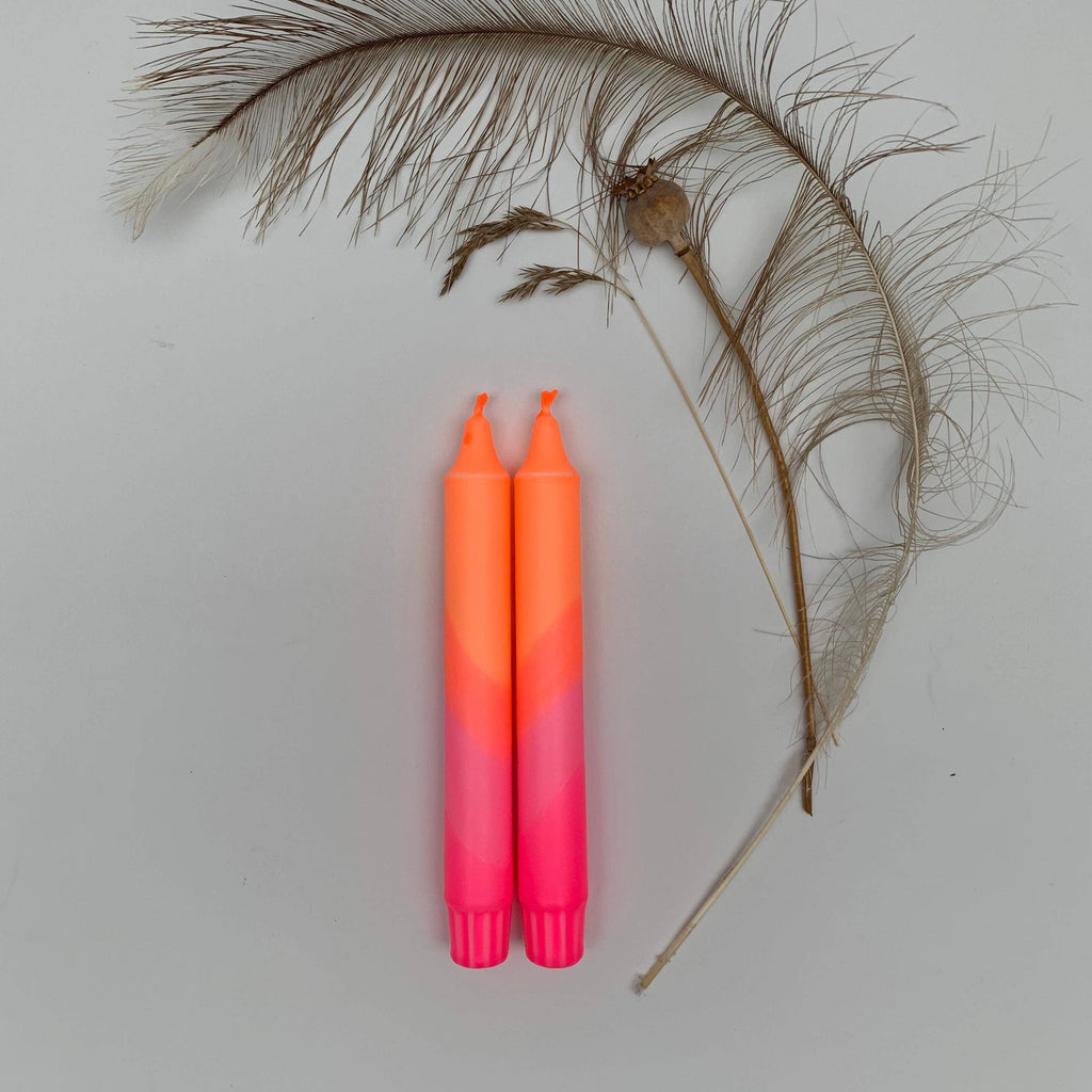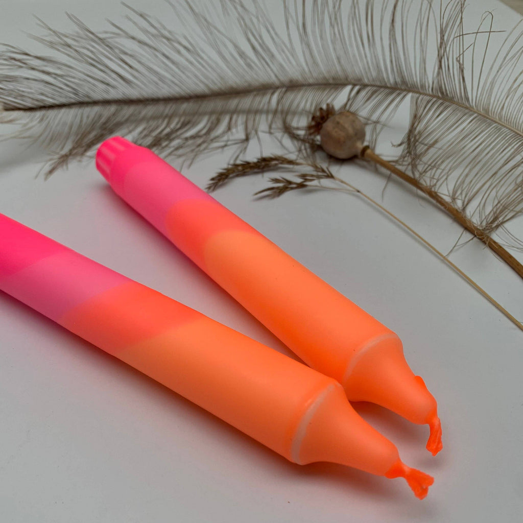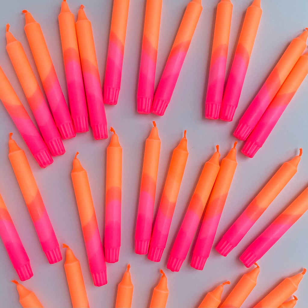 Neon Orange & Neon Pink Swirl Dip Dyed Dinner Candles