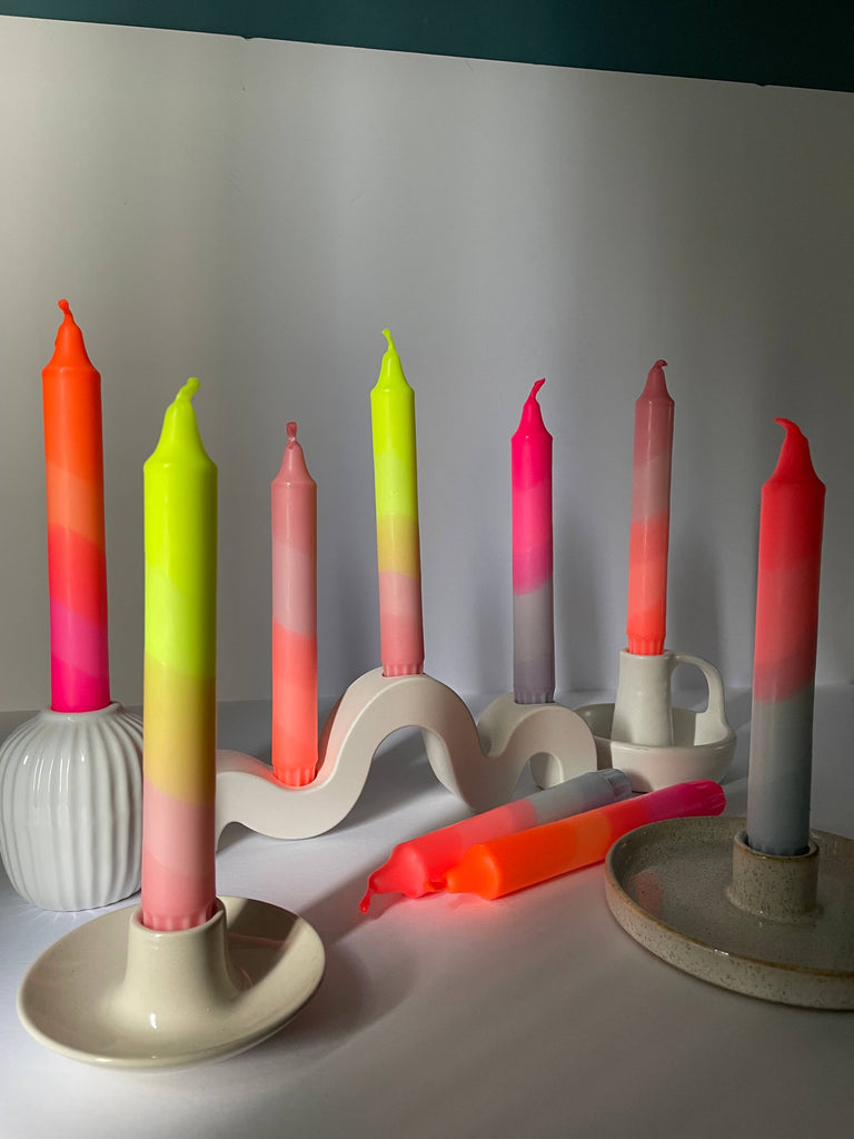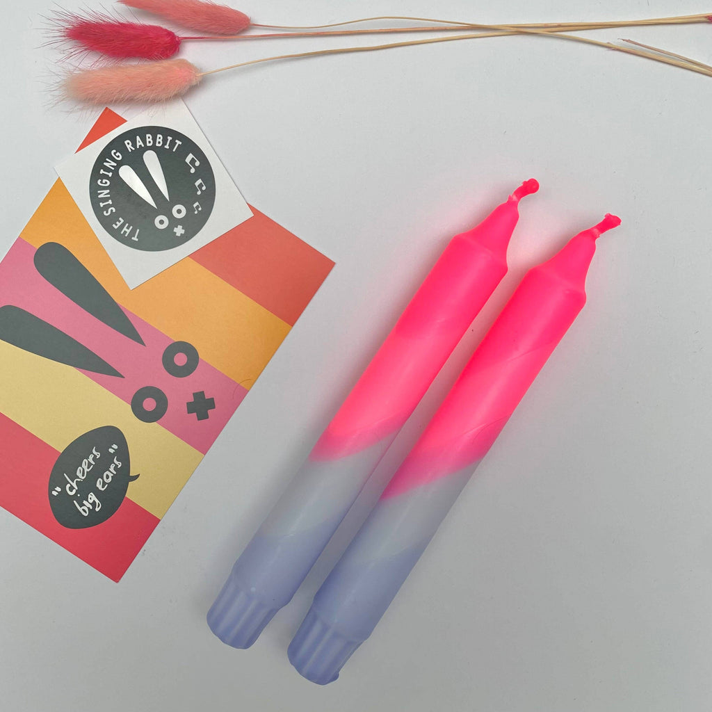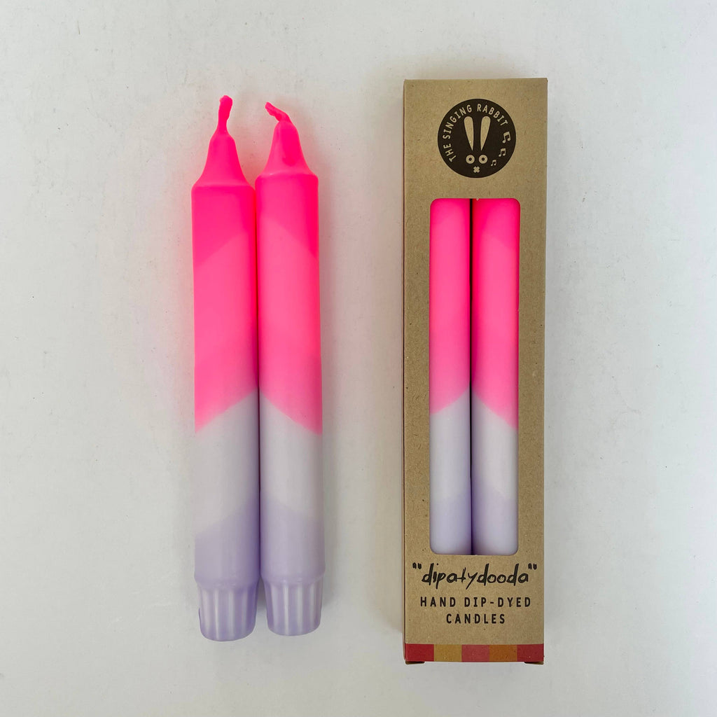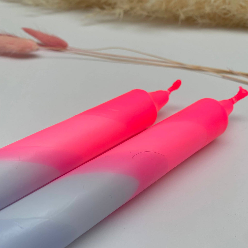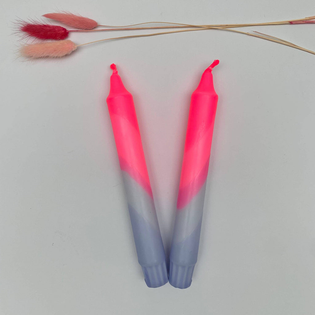 Neon Pink & Lavender Swirl Dip Dyed Dinner Candles