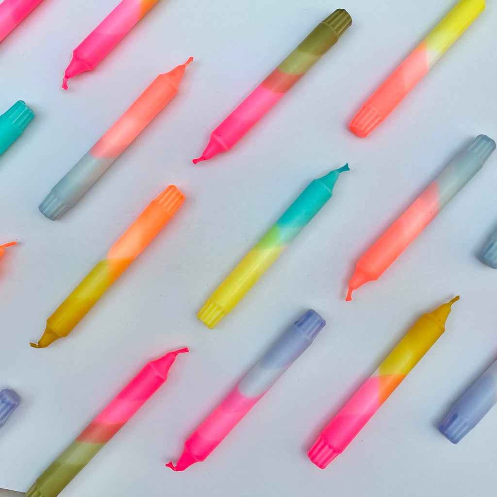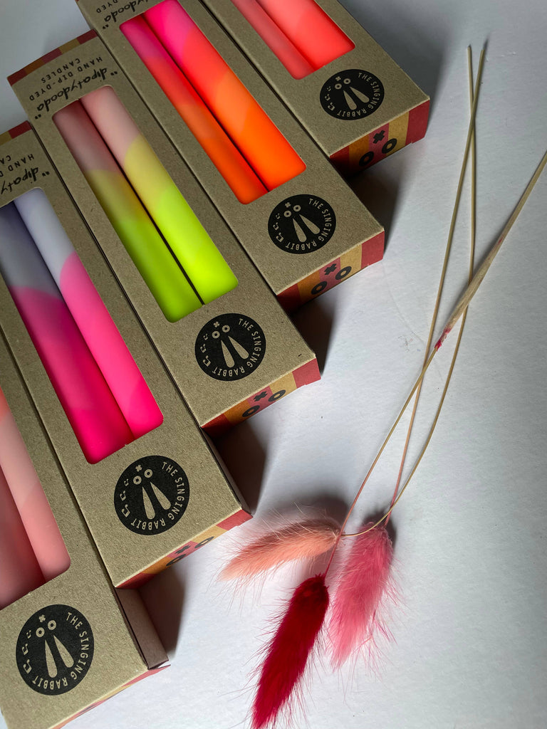• This set of 2 candles, by The Singing Rabbit, is not just for burning - add some fun and a pop of colour to a mantelpiece or table.