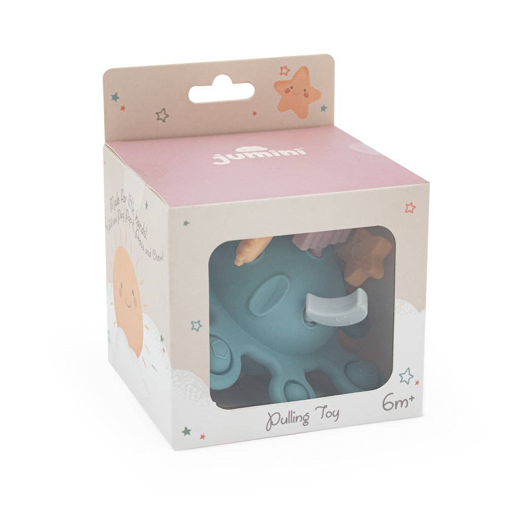 • Introduce baby to endless sensory exploration with this Silicone Pulling Toy, by Jumini. A versatile and engaging toy designed to soothe, entertain, and support early development.