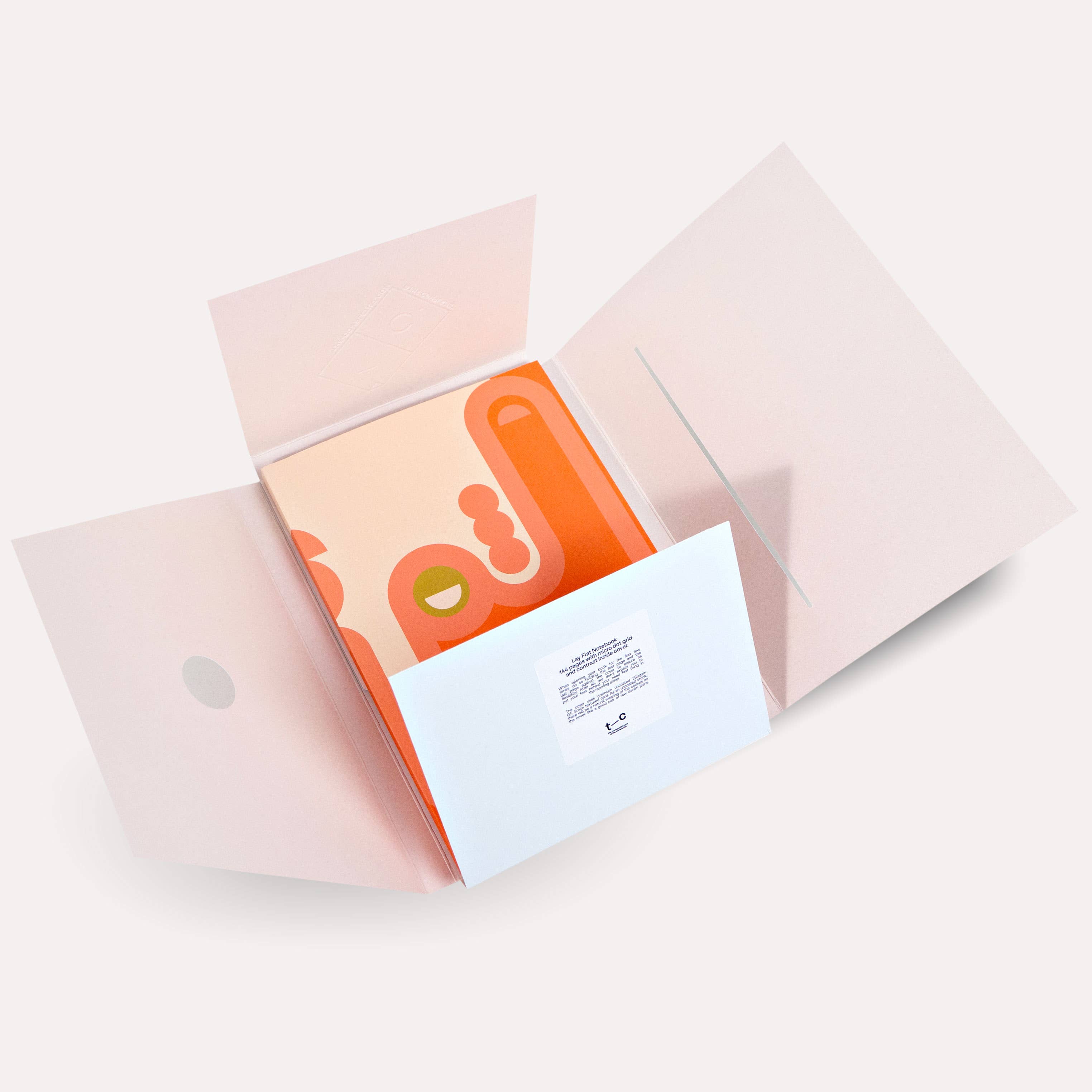 • Soft curves, bold contrast, total desk appeal - the Jeannie Lay-Flat Notebook features a graphic, abstract pattern in peach, red, and cream tones—perfect for stationery lovers with an eye for retro-modern design.
