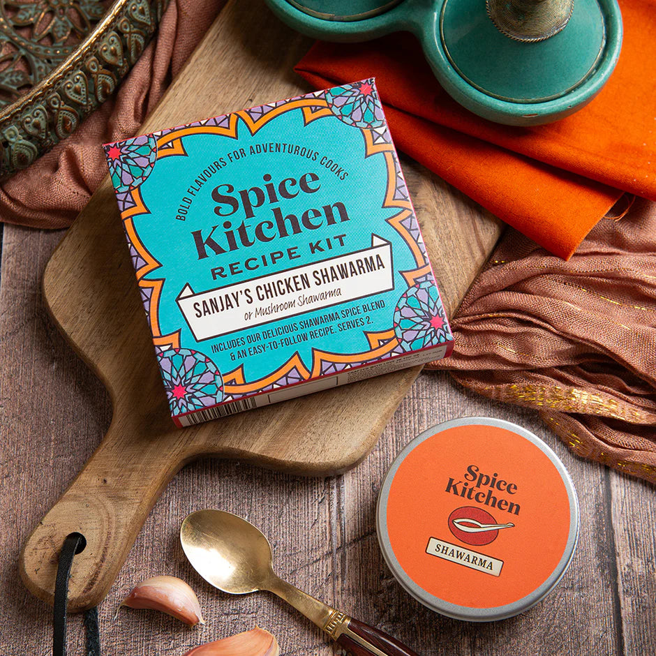 • Bring the sizzling flavour of Middle Eastern street food to your table. Spice Kitchen’s Shawarma Recipe Kit is all about juicy, spiced chicken (or mushrooms!) wrapped in warm flatbreads and loaded with flavour.