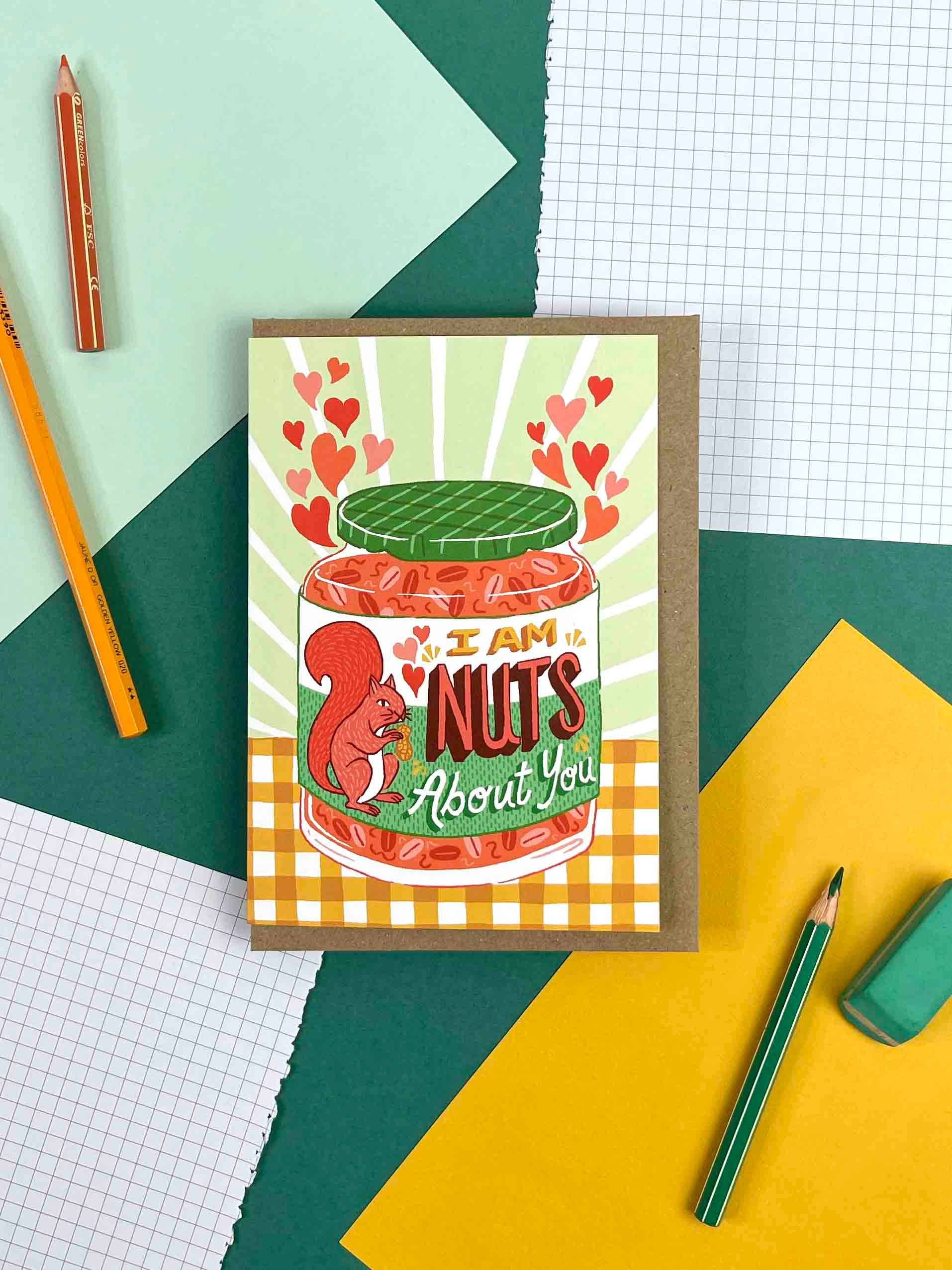 • "I'm nuts about you!" A fun Valentine’s or anniversary card, made for the nut butter lovers in your life.