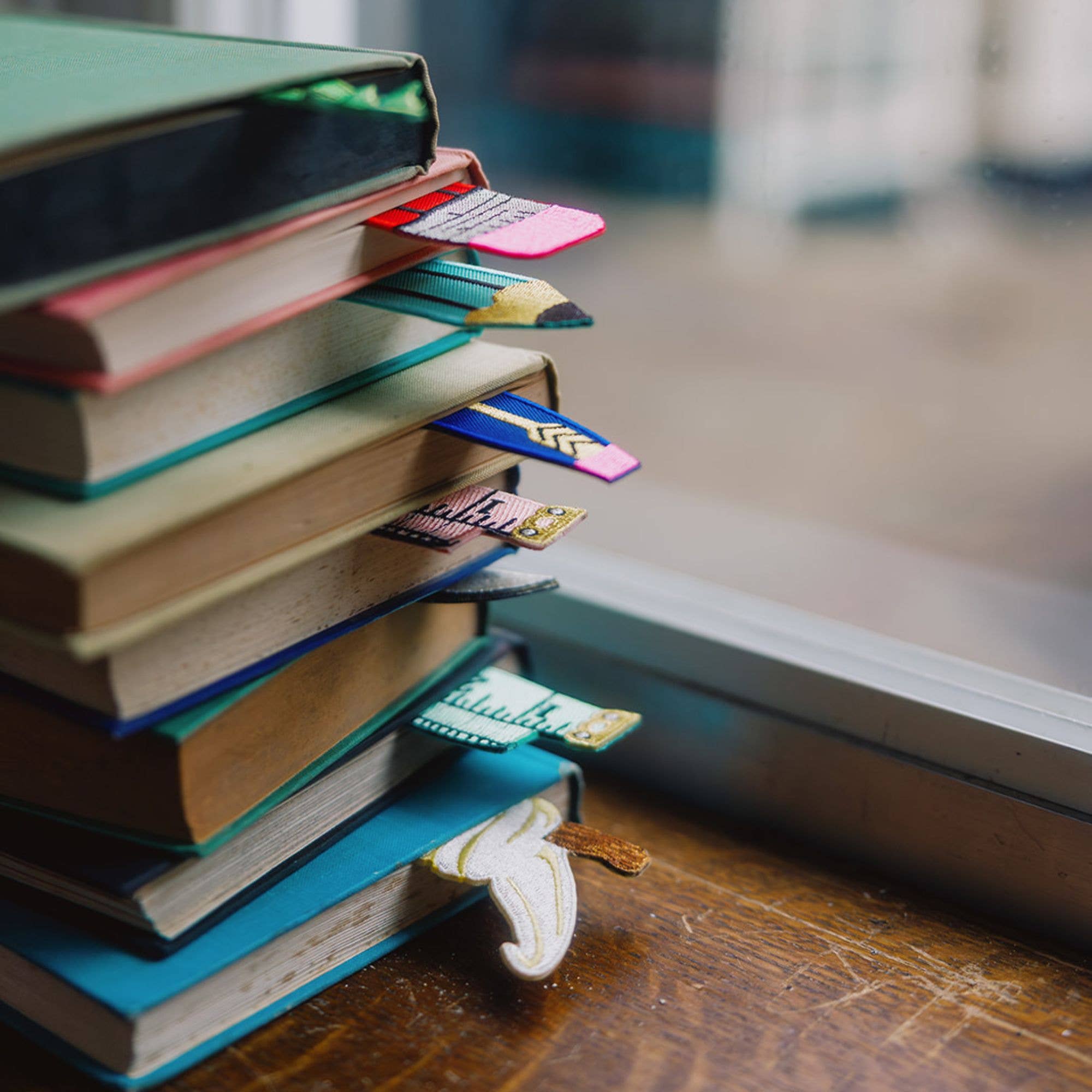 Mint Retro Tape Measure Embroidered Fabric Bookmark