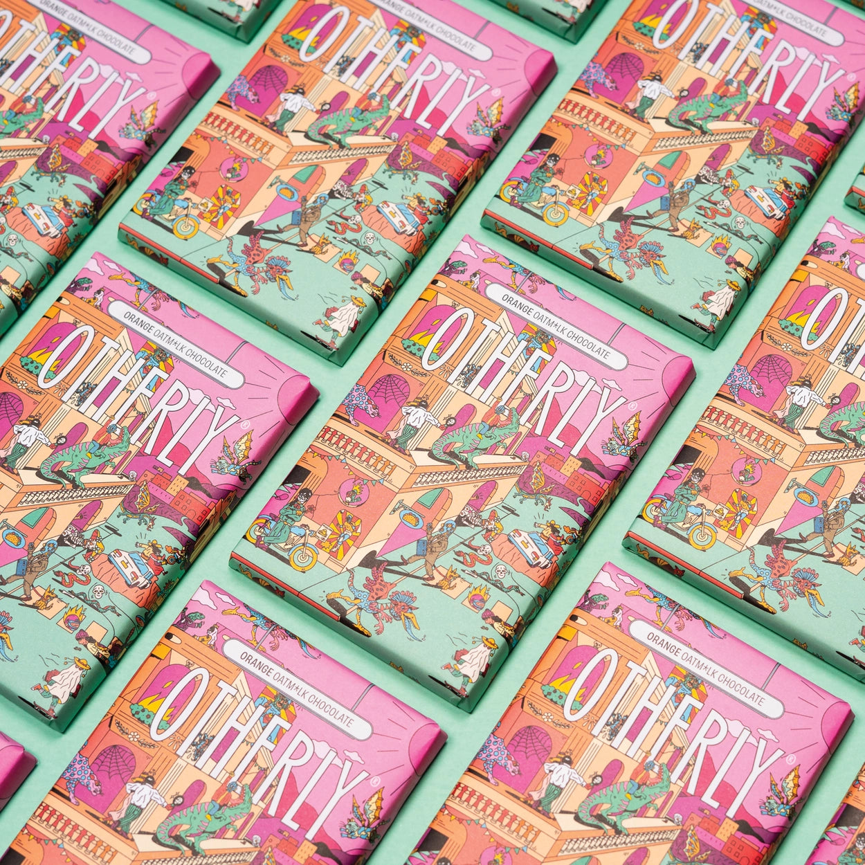• OTHERLY Orange Oatm*lk is the perfect plant-based chocolate 43% cacao content with orange essential oil: with each bite, the orange-flavoured oatm*lk chocolate bar offers a delightful balance of flavours, leaving you with a lingering aftertaste that is both indulgent and invigorating. It's a sensory journey that captures the essence of citrus and chocolate in a harmonious, blissful union, where the orange flavour is distinct yet not overpowering, adding a refreshing twist to the authentic richness of our plant-based chocolate.